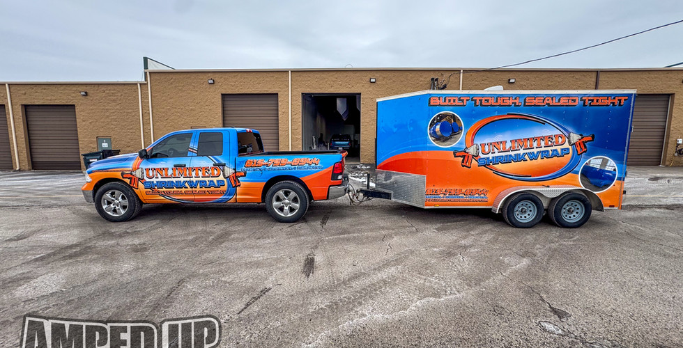 We recently had the pleasure of completing a full vehicle and trailer wrap for Unlimited Shrink Wrap! This major project involved completely covering both their pickup truck and trailer, turning their commercial vehicles into powerful, mobile advertisements.
